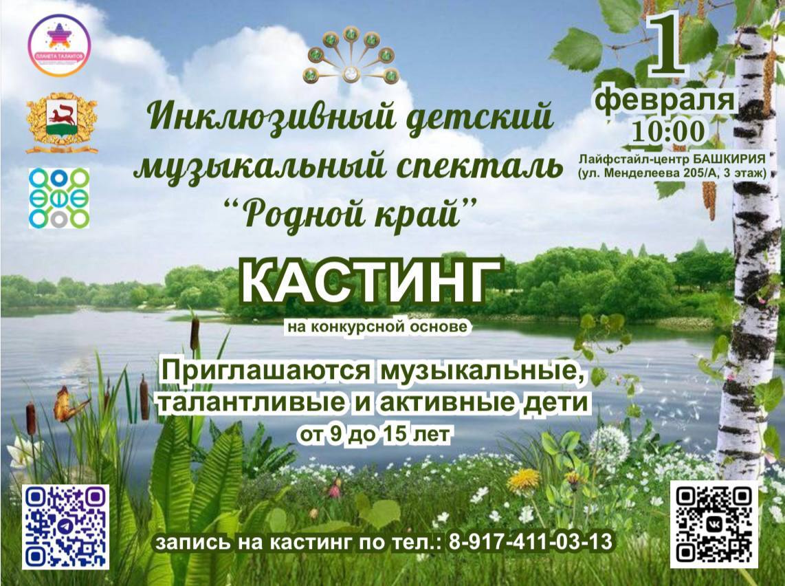 📝Кастинг пройдет 1 февраля по адресу: ул. Менделеева 205/а, 3 этаж (Лайфстацл - центр БАШКИРИЯ).